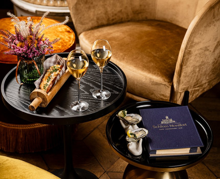 Egal, ob du einen klassischen Cocktail genießt, dich für einen erfrischenden Longdrink entscheidest oder dich einfach von den kreativen Kreationen unseres Barkeepers überraschen lässt – in der Bar im Schloss Montfort am Bodensee findest du den idealen Ort, um in stilvoller Atmosphäre zu entspannen. Begleitet wird dein Drink von einer Auswahl an köstlichen Snacks, die zum Teilen und Genießen einladen. Genieße saisonal wechselnde Snacks und kleine Gaumenfreuden, die deinen Drink abrunden. Hier erwartet dich ein Ort, an dem Genuss und Geselligkeit zelebriert werden.
